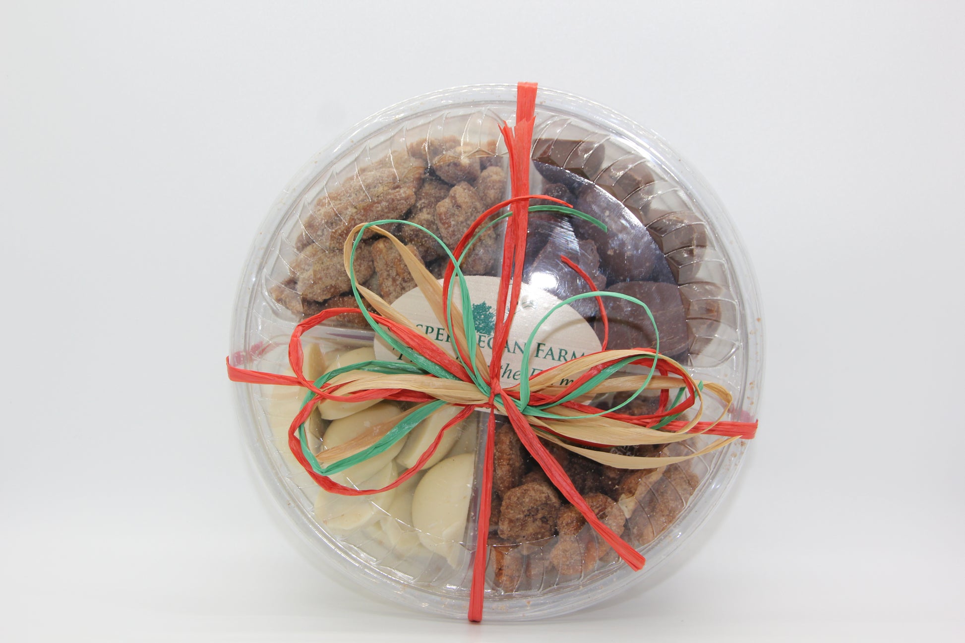 A 4-way gift box provides you with an assortment of pecans - milk chocolate, white chocolate, cinnamon, and praline pecans. A sure way to please everyone.